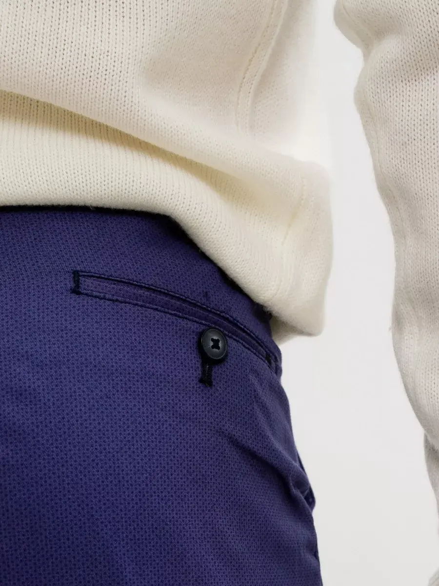 Брюки из Италии торговой марки Divento - это исключительное качество материалов и европейские стандарты производства, строгое следование канонам стиля с учетом актуальных модных тенденций, широкая цветовая гамма и смелый дизайн гуру итальянской моды. 100% - ный итальянский хлопок с небольшой добавкой эластана обеспечивают максимальный комфорт в носке.