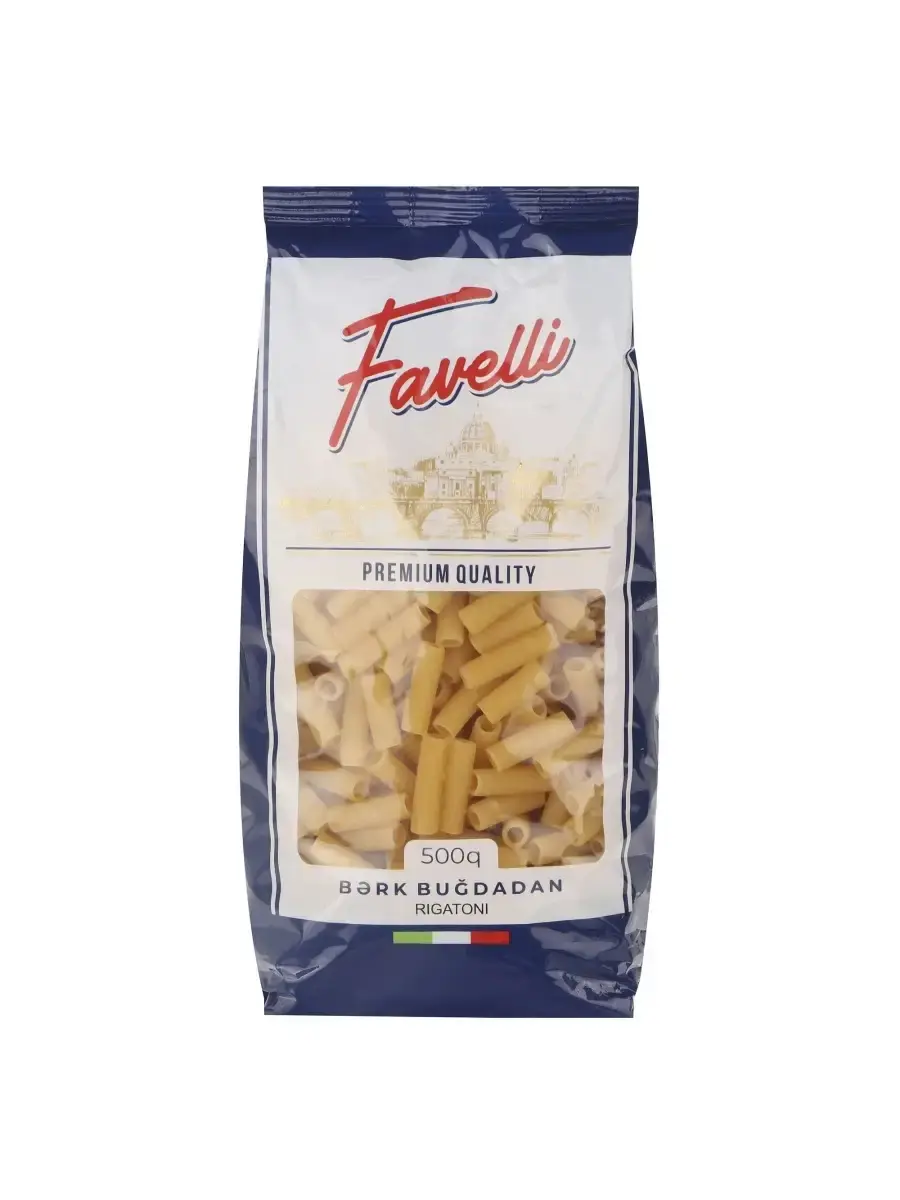 Макароны Favelli производятся из муки твёрдых сортов пшеницы и высшего качества воды. До состояния аль денте они готовятся за 11 минут, не развариваются и не теряют форму.
