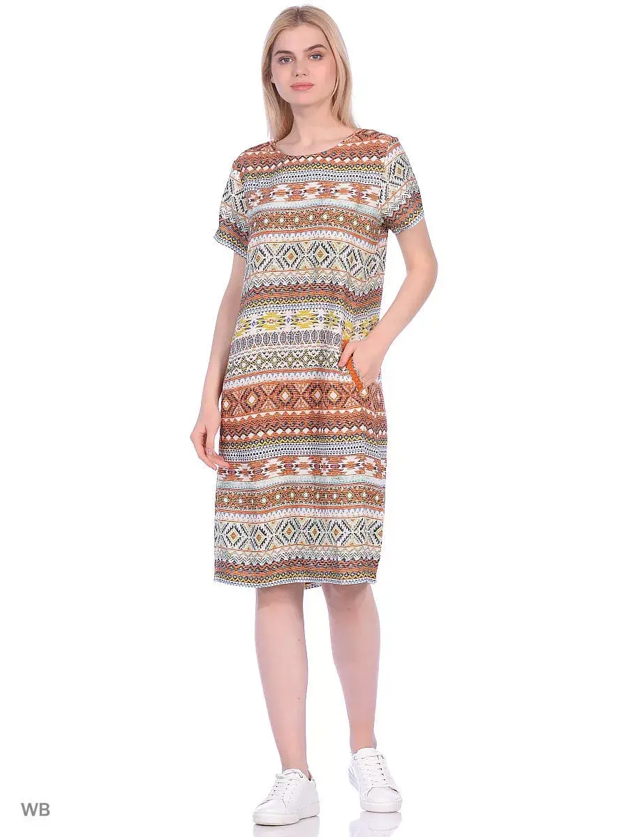 Платье летнее женское из вискозы . Легкое, трикотажное с карманами представлено в больших размерах. Платье миди, длиной чуть ниже колена подойдет девушкам и женщинам с любым типом фигуры. Оно будет гармонично смотреться как с обувью на каблуке, так и с кросовками или кедами. Туника станет отличным решением для пляжного отдыха, так как изготовлена из мягкого легкого трикотажа. Платье женское подходит для дома, повседневной носки и даже выхода в свет. Свободный крой подойдет женщинам с пышными формами и беременным девушкам. Трендовая расцветка в мелкий горох сделает ваш образ стильным и неповторимым. Два кармашка на подоле платья можно использовать для разных легких мелочей. Модель туники подойдет как высоким девушкам, так и среднего или низкого роста, оно будет смотреться по разному, но в каждом случае нарядно и красиво. Характеристики: сарафаны с принтом, мини, вечернее, праздничное, яркое, воздушное, оригинальное, хлопковое, пляжеое, офисное, офис, для пляжа, прямого покроя, поатье объемными юбками, плчжное, распродажа. Носите с удовольствием женскую одежду от COCOON !