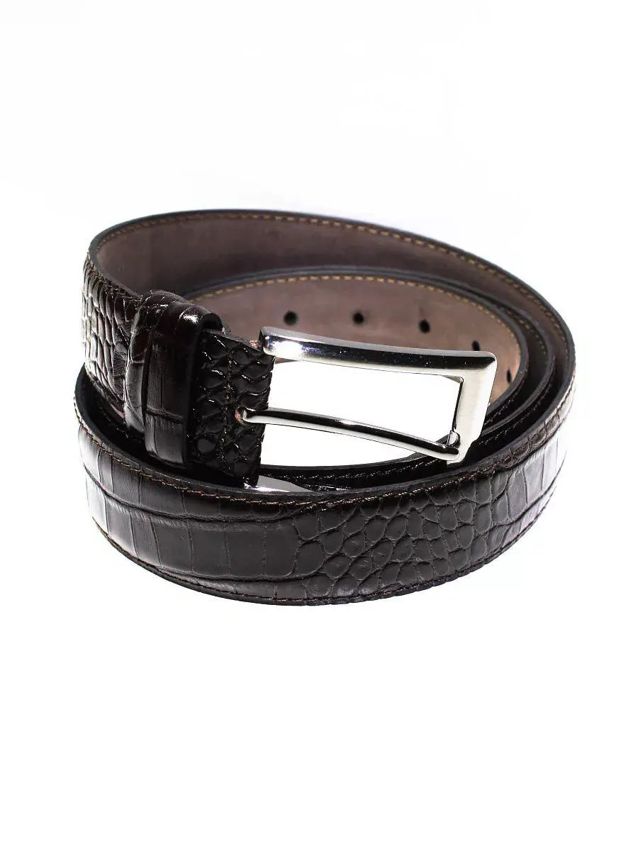 Кожаный ремень – необходимый аксессуар для любого мужчины. Он изготовлен из натуральной кожи (цельного куска), имеет надежную металлическую пряжку. 6 отверстий для регулировки, 2 шлевки (тренчика). Есть возможность укоротить. Данная модель имеет имитацию кожи крокодила. Ремень в подарочной упаковке – подарок. Выбирайте свой ремень!