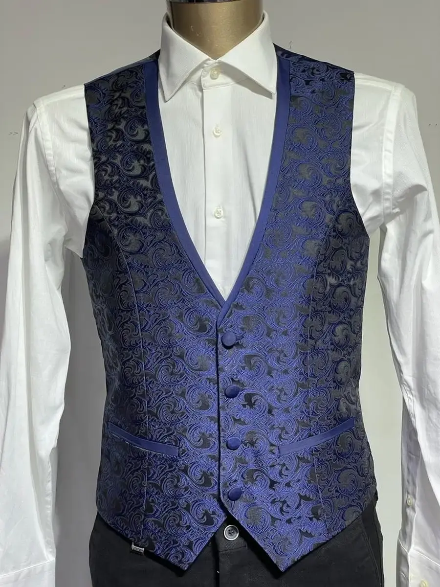 Стильный образ преображает мужчину! Праздничная мужская жилетка подойдет для мальчика на школьный выпускной, также красиво смотрится для фотосессий и праздничных выходов. Такая жилетка отлично смотрится с брюками и рубашкой, а также с джинсами для кежуал образов. Удобный жилет с интересным кроем отлично подчеркивает мужской силуэт. Модель представлена во всех ТОПовых оттенках - синем, и фиолетовом. Это идеальная костюмная жилетка для подростков и мужчин. Такой образ всегда будет выделят вас на фоне остальных. Может использоваться, как офисная жилетка, или в качестве дополнения свадебного костюма. Жилет приятен на ощупь и красиво смотрится, ткань отличается практичностью и прочностью. Купив жилетку, вы можете носить ее поверх рубашки или футболки, что сделает мужские образы неподражаемыми.